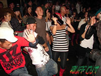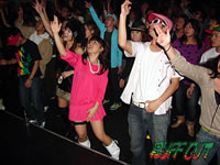 会場に遊びに来ていたダンサー達はステージの上に勢揃い。