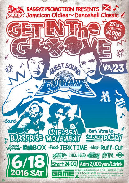 6.18 土 Raggyz Promotion Presents GET IN THE GROOVE vol.23 -Jamaican Oldies〜Dancehall Classic- at THE GAME