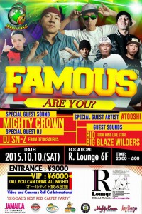 FAMOUS!!!! Are you?? -REGGAE’S BEST RED CARPET PARTY!!- ■SPECIAL GUEST SOUND≫ MIGHTY CROWN ■SPECIAL GUEST ARTI…